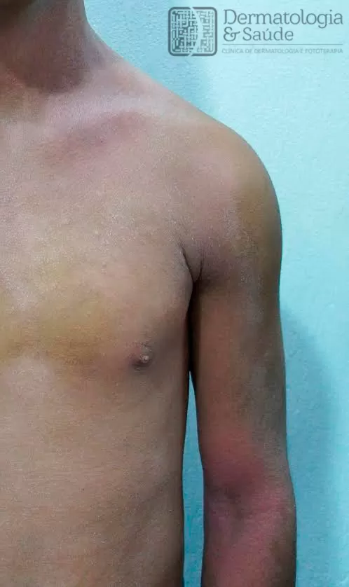 A localização das lesões também é típica nos indivíduos com esse quadro dermatológico: acomete geralmente a face nas crianças, especialmente na região frontal e nos malares, poupando o meio da face. Com o avançar da idade, o acometimento torna-se mais presente nas “dobras” das regiões do pescoço, dos braços e das pernas, porém ressaltando que qualquer área da pele pode ser afetada. Essas áreas, quando acometidas, podem auxiliar no diagnóstico correto da dermatite.