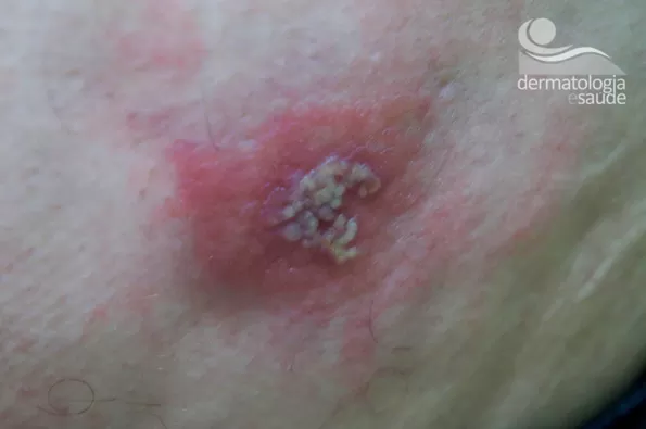 Na região genital, as vesículas rompem-se rapidamente, deixando as lesões com aspecto de pequenas ulcerações ou erosões avermelhadas. Por essa maior fragilidade do tecido, dificilmente o paciente irá observar vesículas nessa região.
