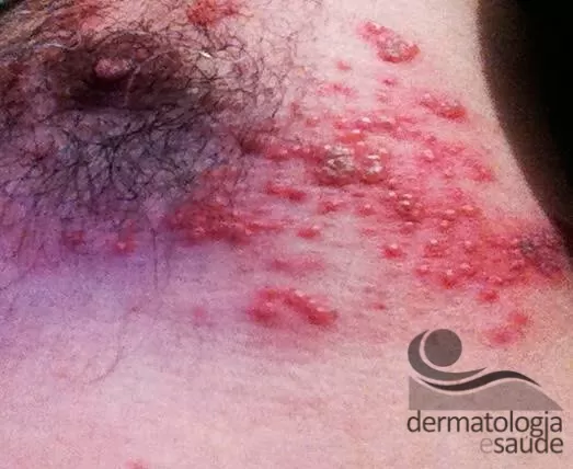 O quadro clínico do herpes zoster é caracterizado por começar, geralmente, com uma queixa de formigamento, alteração da sensibilidade ou até mesmo dor intensa em uma área delimitada da pele. Posteriormente surgem as lesões, que são vesículas agrupadas, seguindo um “caminho” bem definido na pele, chamado dermátomo. Raramente essas lesões atravessam de “um lado para o outro” do corpo.